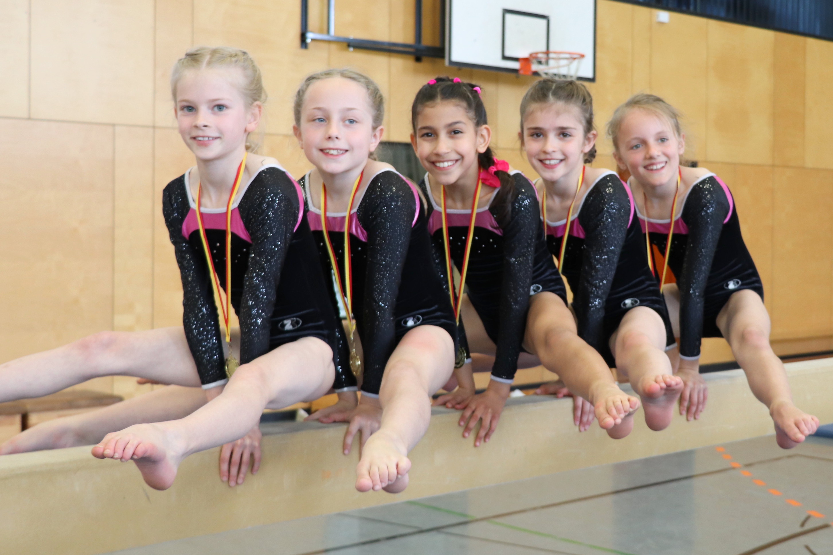 Die „Kleinen“ starteten als jüngste Mannschaft bei den 9- bis 12jährigen und schafften es in der Gesamtwertung nach dem Tagessieg am letzten Wettkampftag noch auf Platz 2. Hier turnten Meral Borshan, Mailyn Federschmid, Luisa Lorenz, Antonia Schlegel und Greta Schwarze.